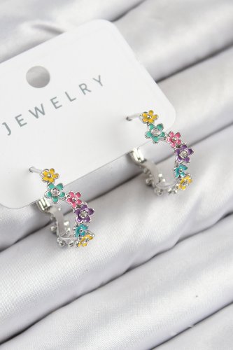 Pirinç Renkli Papatya Model Gümüş Renk Kadın Küpe