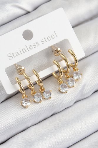 Pirinç Sallantılı Zirkon Taşlı Model Gold Renk Kadın Küpe