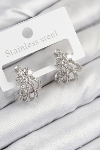 Pirinç Zirkon Taşlı Model Gümüş Renk Kadın Küpe