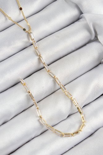 Pirinç Zirkon Taşlı Model Gold Renk Y Kolye