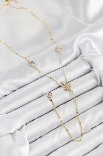 Pirinç Zirkon Taşlı Kutup Yıldızı Model Gold Renk Y Kolye