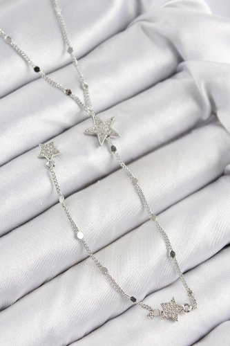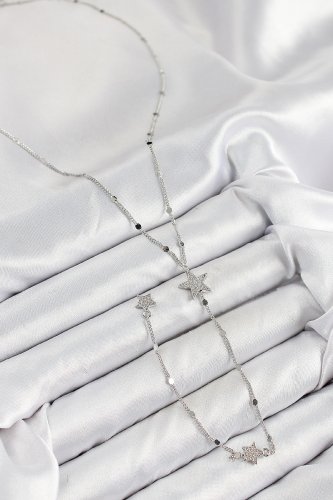 Pirinç Zirkon Taşlı Yıldız Model Gümüş Renk Y Kolye