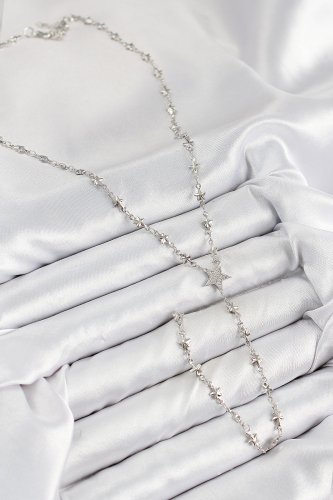 Pirinç Zirkon Taşlı Yıldız Model Gümüş Renk Y Kolye