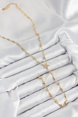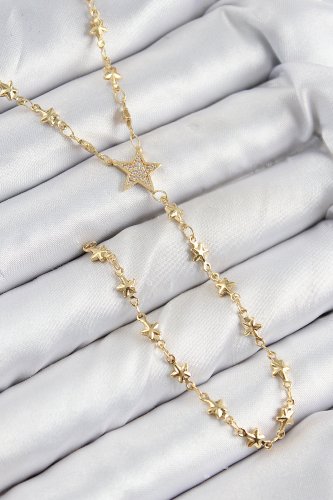 Pirinç Zirkon Taşlı Yıldız Model Gold Renk Y Kolye