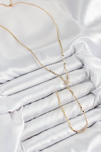 Pirinç Zirkon Taşlı Ezme Zincirli Deniz Yıldızı Model Gold Renk Y Kolye