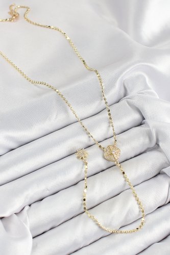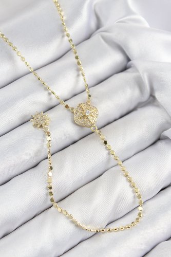 Pirinç Zirkon Taşlı Ezme Zincirli Madalyon Model Gold Renk Y Kolye