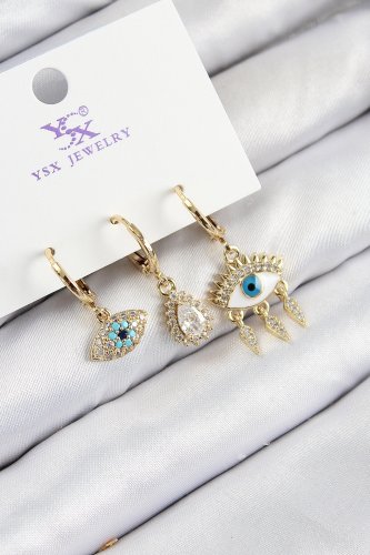 Pirinç Zirkon Taşlı 3lü Fatmanın Gözü Model Gold Renk Kadın Küpe