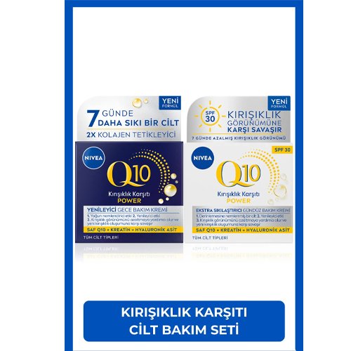 NIVEA Q10 Power Kırışıklık Karşıtı Cilt Bakım Seti Gece Bakım Kremi 50ml ve Gündüz Kremi 50ml SPF30