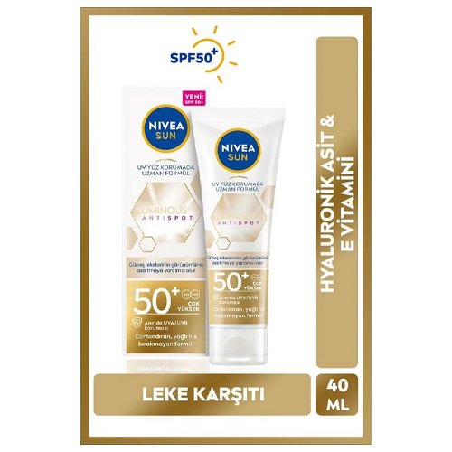 NIVEA Luminous630 Leke Karşıtı Güneş Koruyucu Yüz Kremi 40ml Spf50 Hyalüronik Asit E Vitamini Uvauvb