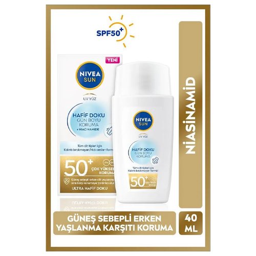 NIVEA SUN SPF50 Hafif Dokulu Güneş Koruyucu Yüz Kremi 40ml Yüksek Güneş Koruyucu Erken Yaşlanma Karşıtı