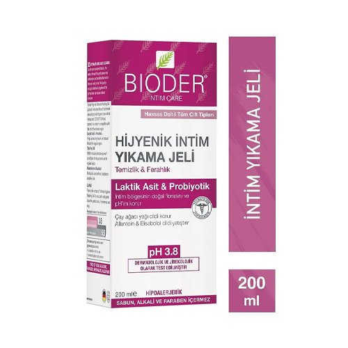 Bioder İntim Yıkama Jeli 200 Ml - Laktik Asit Probiyotik Çay Ağacı Yağı Allantoin Bisabolol