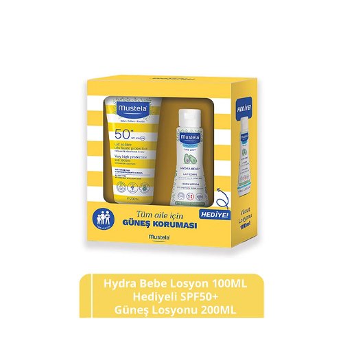 Mustela Hydra Bebe Losyon 100ml Hediyeli SPF 50 Güneş Koruyucu Tüm Cilt Tipleri 200ml