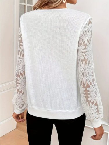 V Yaka Fistolu Kolu Tül Detaylı Bluz -Beyaz