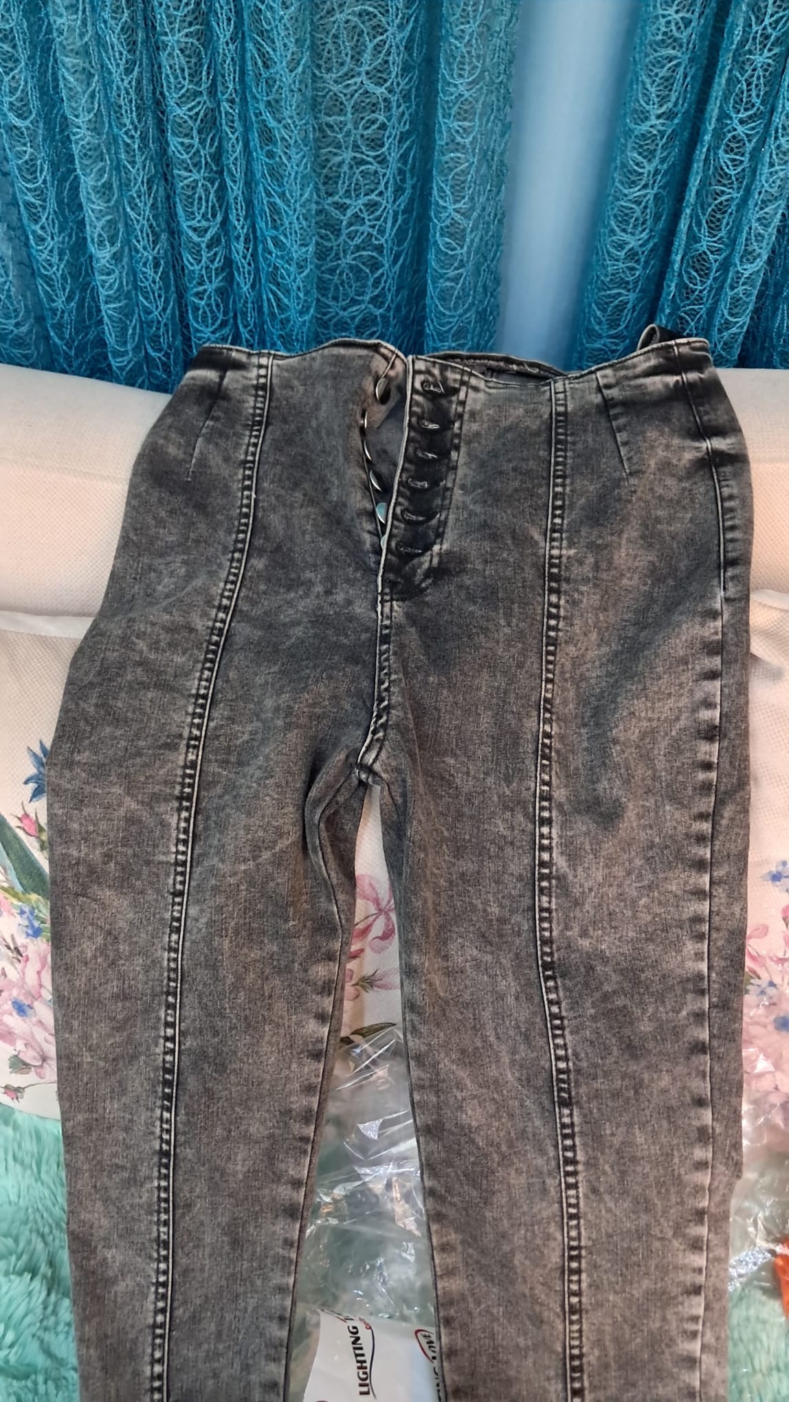 Kadın yüksek bel önden düğmeli Jean pantolon