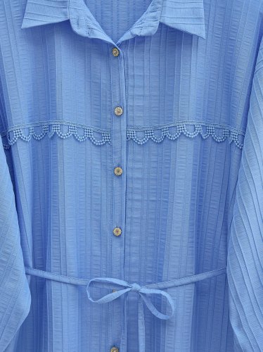 Taşlı Düğmeli Beli Bağlamalı Dantel Detaylı Gömlek -Mavi