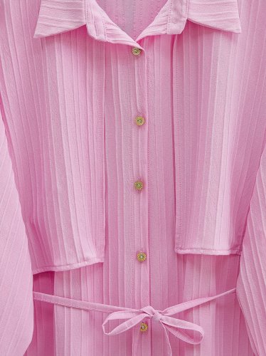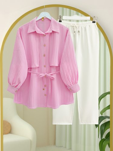 Beli Bağlamalı Bolero Detaylı Taşlı Düğmeli Gömlek -Pembe