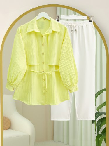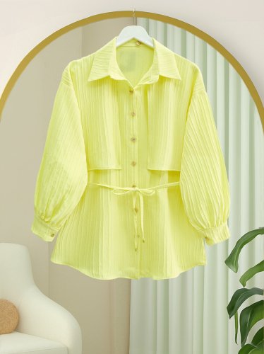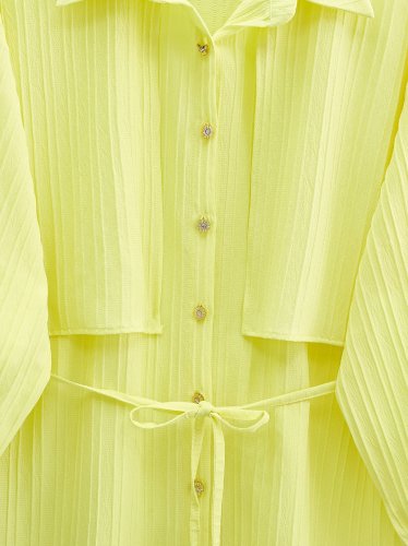 Beli Bağlamalı Bolero Detaylı Taşlı Düğmeli Gömlek -Sarı