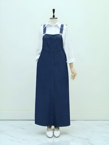 Cep Detaylı Askılı Kot Salopet -Koyu Mavi