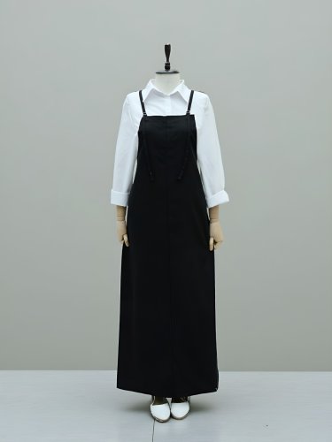 Askılı Gabardin Jile Elbise -Siyah