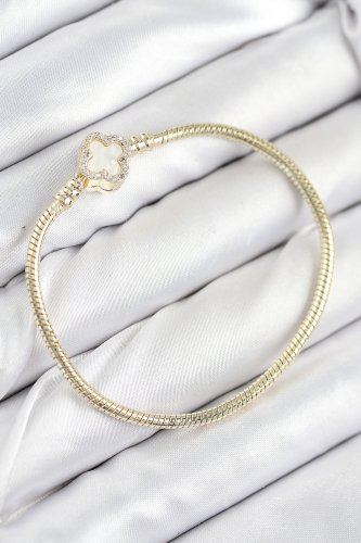 Pirinç Charm Zirkon Taşlı Yonca Model Gold Renk Kadın Bileklik