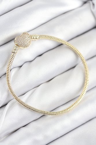 Pirinç Charm Zirkon Taşlı Kalp Model Gold Renk Kadın Bileklik