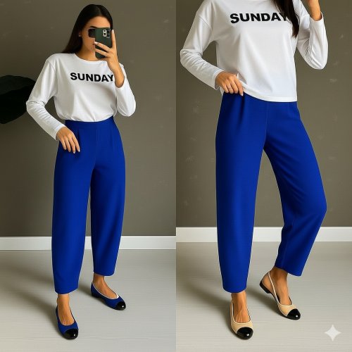 Kadın yüksek bel krep pantolon