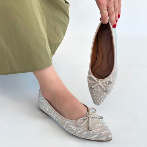 Sarra Bej Saten İşlemeli Babet Ayakkabı