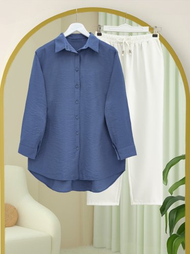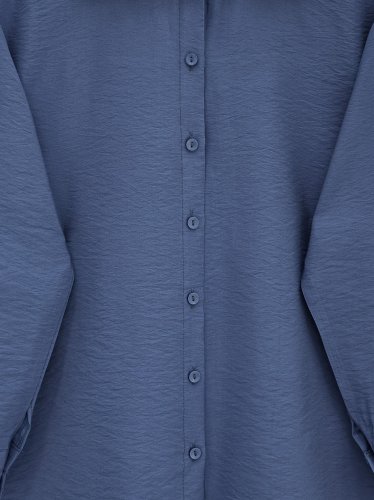 Arkası Uzun Düğmeli Poplin Gömlek -İndigo