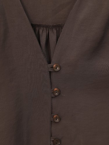 V Yaka Düğmeli Arkası Uzun Gömlek -Kahve