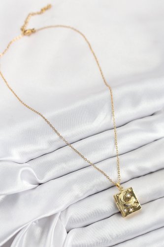 316L Çelik Zirkon Taşlı Açılabilr Kapaklı Kitap Model Gold Renk Kadın Kolye