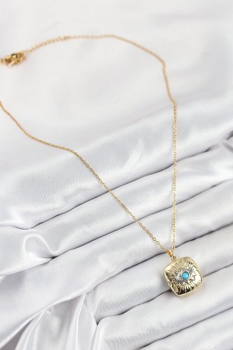 316L Çelik Zirkon Taşlı Açılabilr Kapaklı Göz Model Gold Renk Kadın Kolye