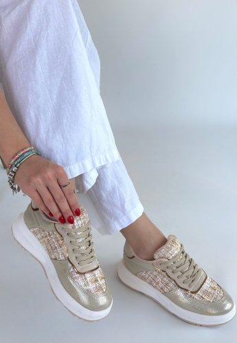 Hawer Bej Cilt Bağcıklı Spor Ayakkabı