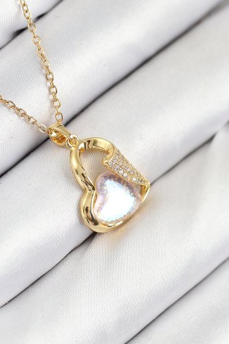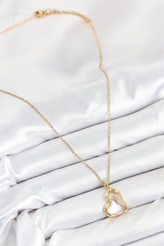 316L Çelik Zirkon Taşlı Kalp Model Gold Renk Kadın Kolye