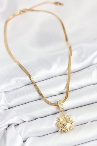316L Çelik Zirkon Taşlı Güneş Model Gold Renk Kadın Kolye