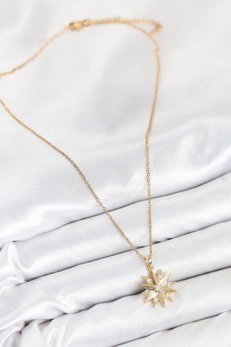 316L Çelik Zirkon Taşlı Kutup Yıldızı Model Gold Renk Kadın Kolye