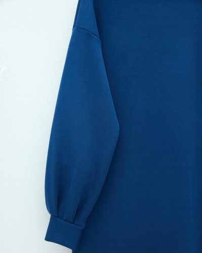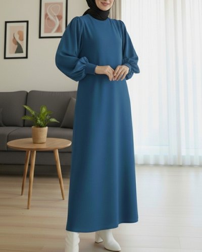Yuvarlak Yaka Uzun Oysh Elbise -Petrol