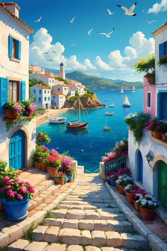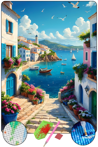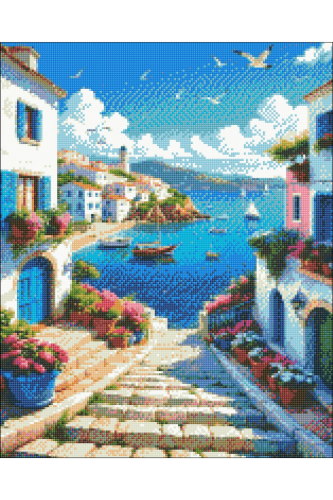 Akdeniz sahil kasabası sayılarla boyama elmas hobi seti