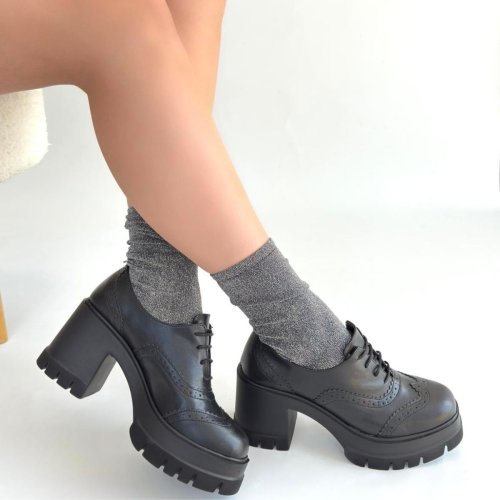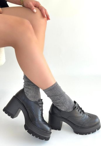 Tiwer Siyah Cilt Dolgu Topuk Ayakkabı