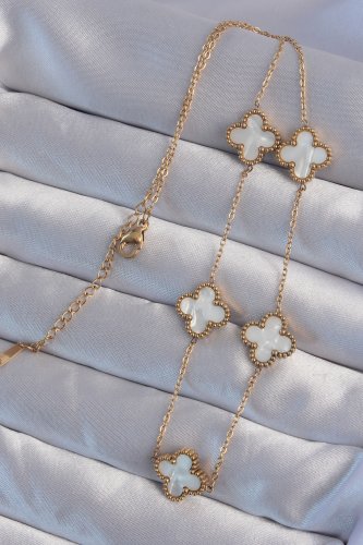 316L Çelik Gold Renk Beyaz Sedefli Yonca Kolye