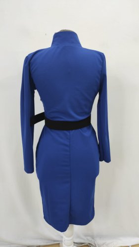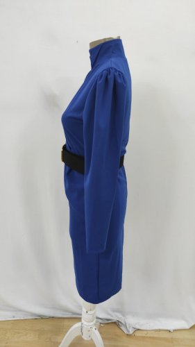 Kadın uzun kollu hakim yaka beli kemerli cepli midi ithal krep elbise