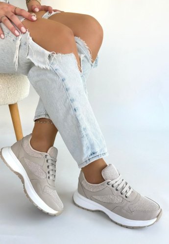 Slar Bej Cilt Bağcıklı Spor Ayakkabı