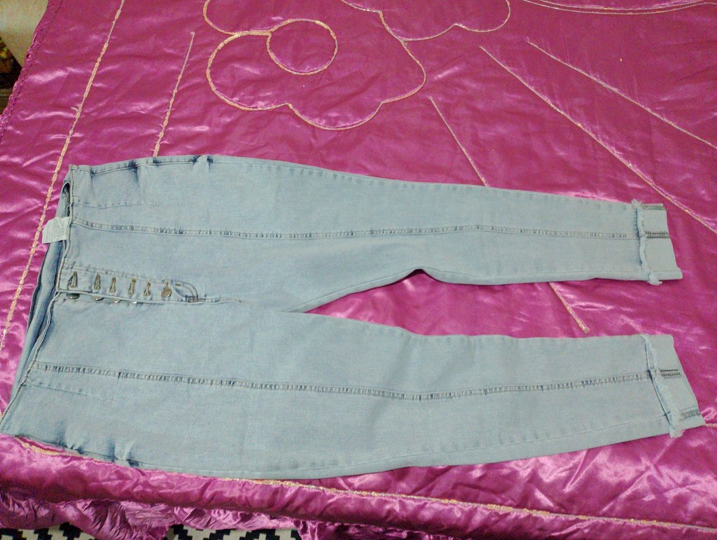 Kadın yüksek bel önden düğmeli Jean pantolon