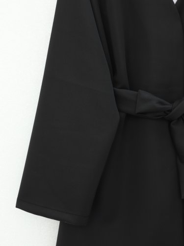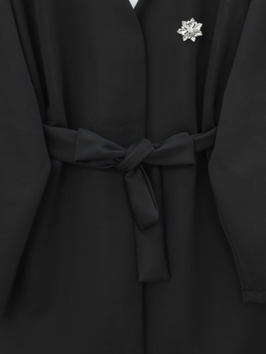 Broş Detaylı Beli Kuşaklı Scuba Ceket -Siyah