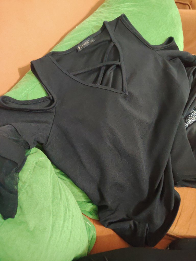 Kadın kısa kollu v yakalı soğuk omuz kolda ip detaylı kolda şifon tül detaylı janjan krep bluz