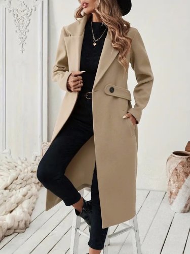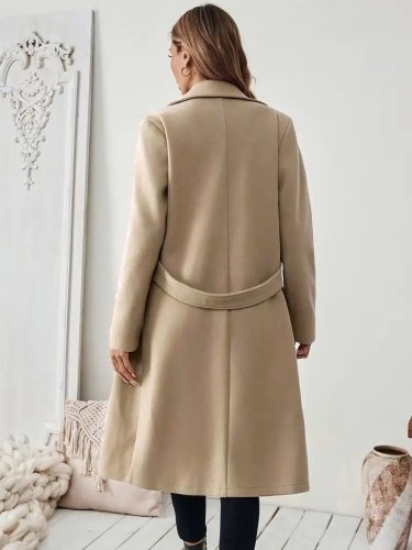 Kadın uzun kollu yakalı belde şerit düğme detaylı cepli mini kaşe kaban