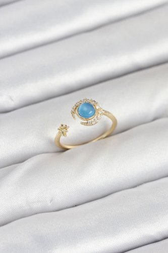 Pirinç Gold Renk Zirkon Taşlı Ay Yıldız Kadın Yüzük