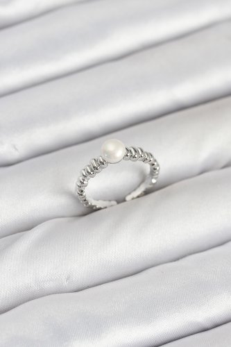 Pirinç Gümüş Renk Göbek İnci Model Kadın Yüzük