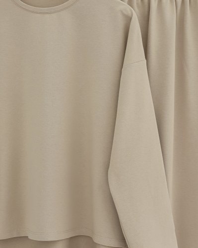 Arkası Uzun Yırtmaçlı Etekli İki İp Penye Takım -Bej