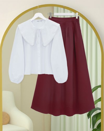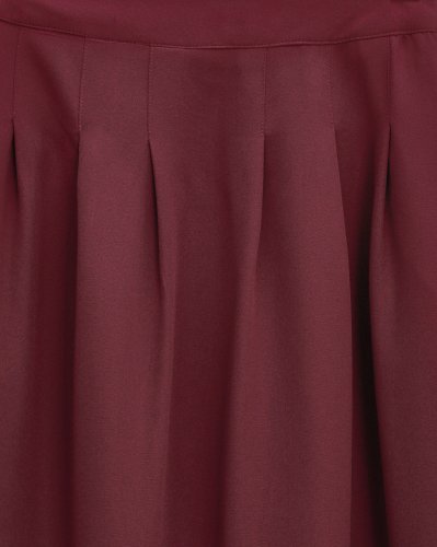 Fermuarlı Cepli Pliseli Krep Etek -Bordo