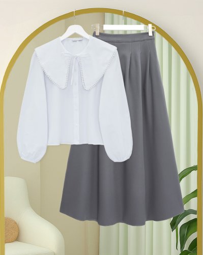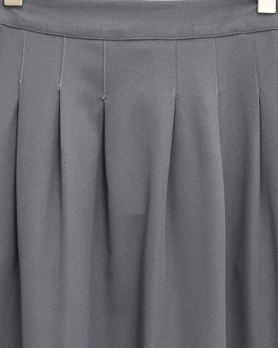 Fermuarlı Cepli Pliseli Krep Etek -Gri